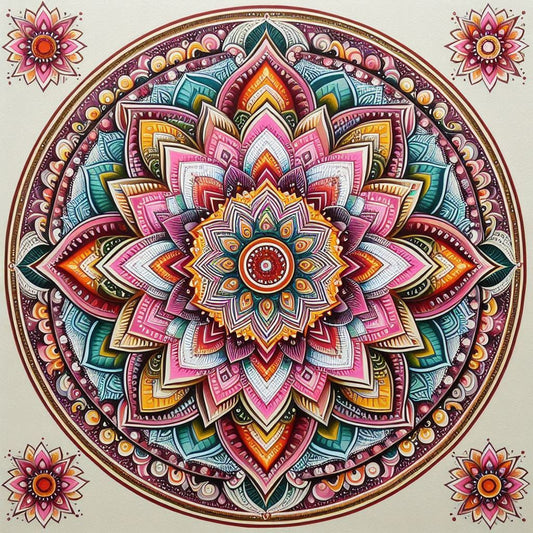 Mandala Art Poster with Wooden Frame - Blue and Pink - A4 Size