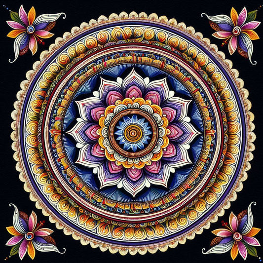 Mandala Poster in a wooden frame - Dark theme - A4 Size