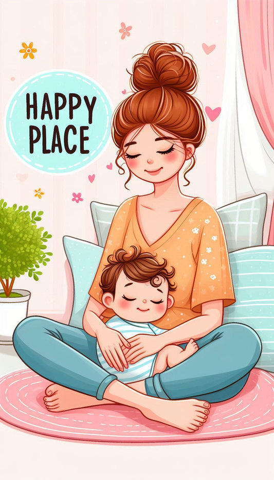 Happy Place Poster with Frame - Mom and Baby Illustration